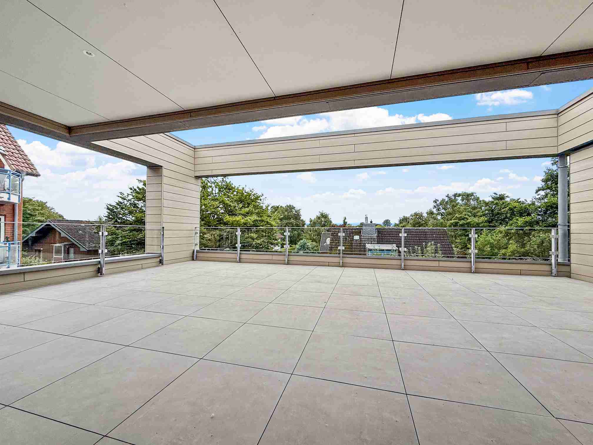 Das Penthouse im Staffelgeschoss – zwei Terrassen, eine zur Ostsee und eine zur Süd seite, bieten unvergleichliche Ausblicke. Die Räume sind ohne Schrägen konzipiert, lichtdurchflutet und modern. Exklusivität und Panorama-Seeblick in Vollendung.