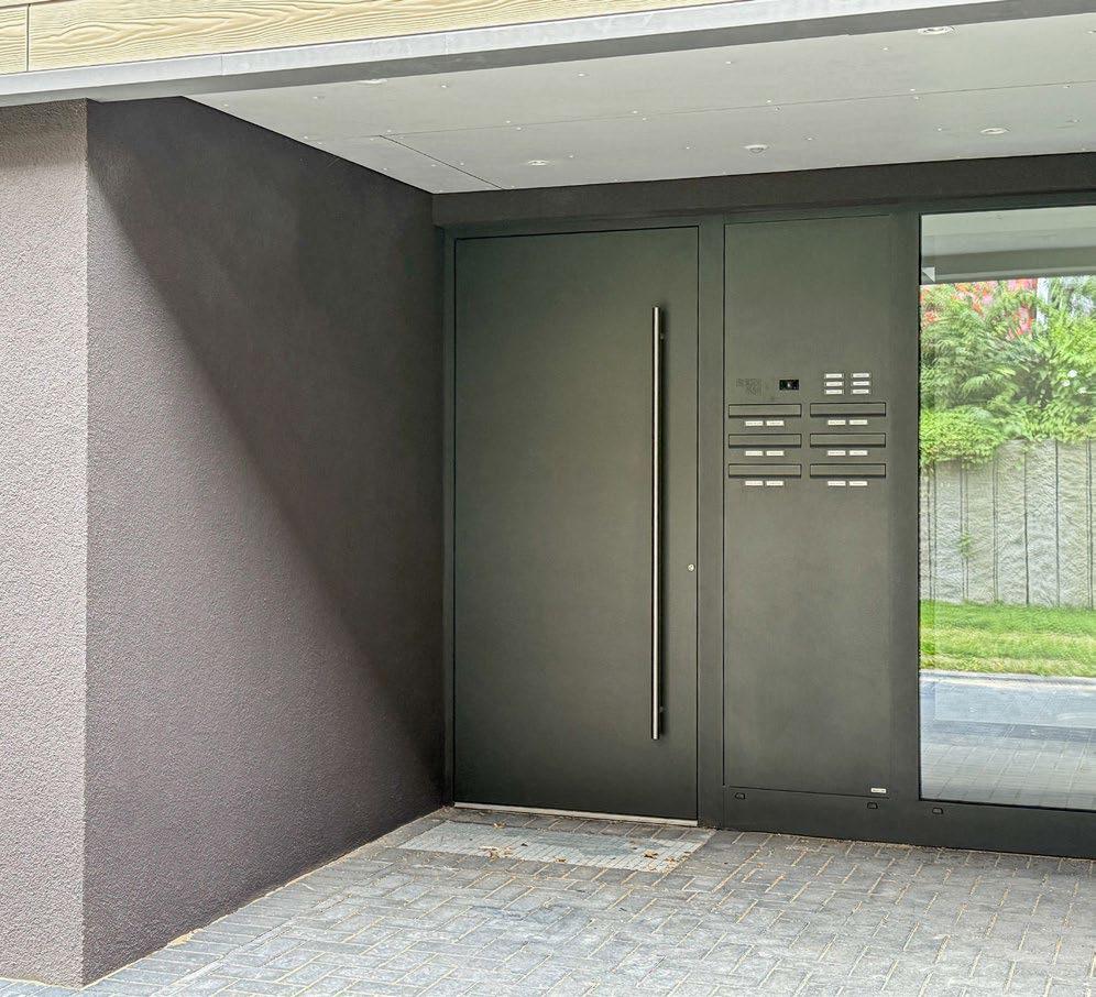 Das Gebäude vereint moderne Architektur mit hochwertigen Materialien und klarer Linienführung. Die Kombination aus massiver Bauweise und nachhaltiger Holzkonstruktion sorgt für Qualität und Langlebigkeit.