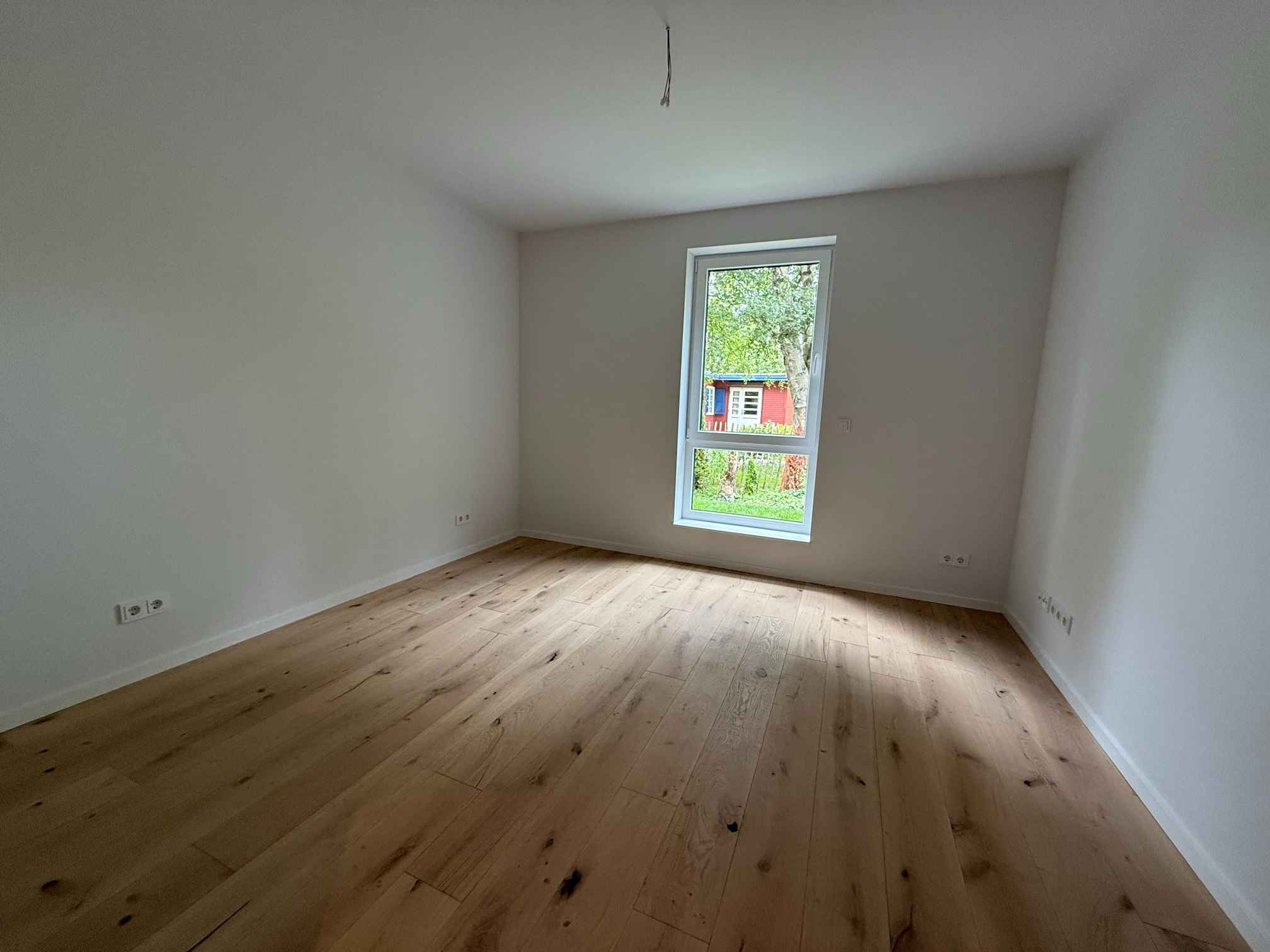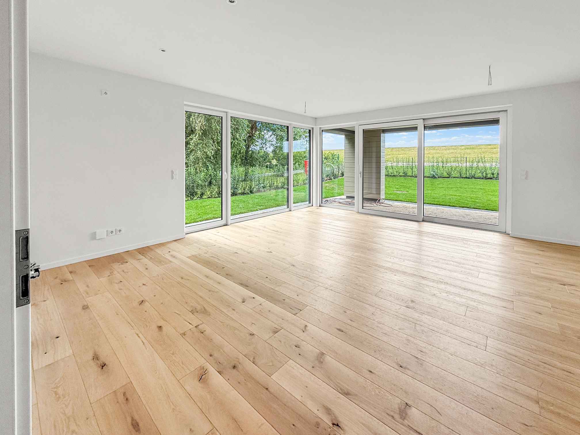 Der lichtdurchflutete offene Wohn-/Ess-/Kochbereich übernimmt die Tradition des in skandinavischen Ländern so beliebten Allraums, der das gemeinschaftliche Leben ohne trennende Wände ermöglicht und für hohe Lebensqualität, Entspannung und Wohlbefinden sorgt. Das mit 12,6 m² gut bemessene Schlafzimmer ist wie alle Räume, mit Ausnahme des Badezimmers und des Abstellraumes, mit schönem Parkettboden aus Eiche, inkl. weißen Fußleisten aus Holz versehen. Die gesamte Wohnung ist barrierefrei.