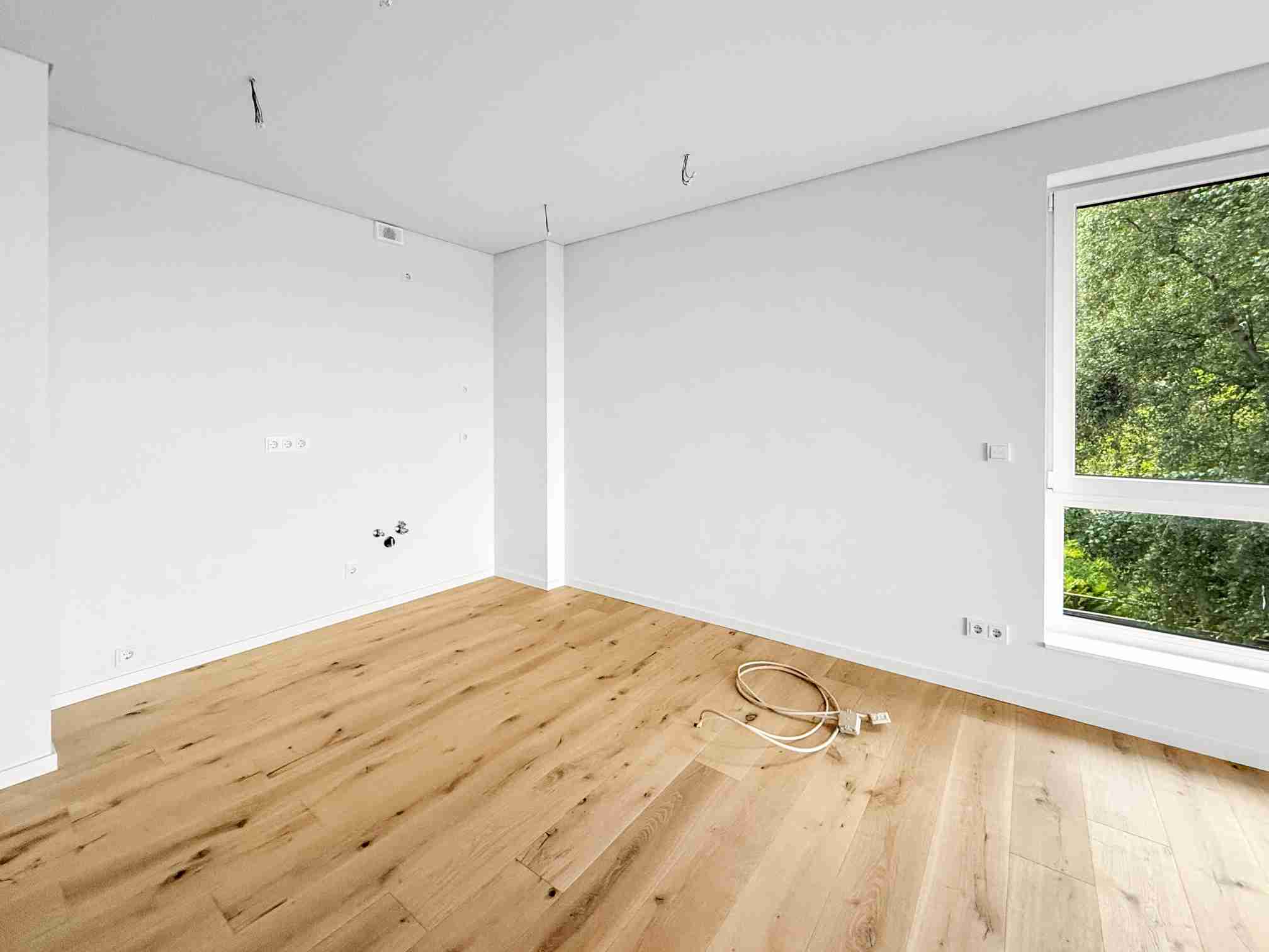 Über den weitläufigen Flur (ca. 18qm) sind alle Räume zugänglich. Das Herzstück: ein beeindruckender Wohn- und Essbereich mit ca. 36 m², lichtdurchflutet und mit offener Küche, die individuell planbar ist. Alle erforderlichen Leitungen (Sanitär und Elektro) bis zu den senkrechten Ver- und Entsorgungsschächten sind vorhanden.
